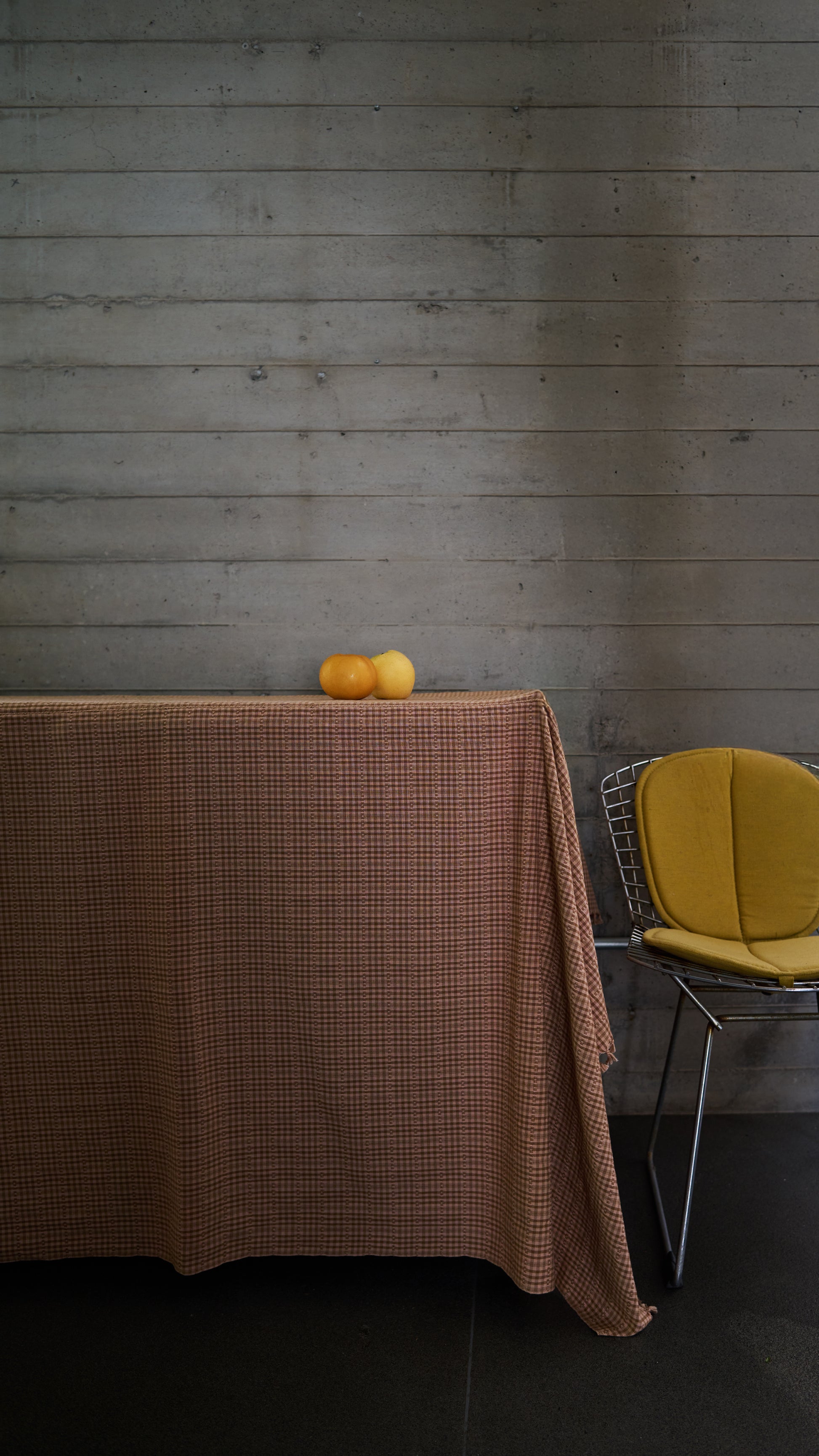 Mantel en tono beige con patrón de cuadros tejidos en telar. Su textura suave y natural aporta calidez a cualquier mesa, ideal para comidas cotidianas o reuniones íntimas. Confeccionado en lino y algodón por la artesana Ernestina en Chiapas, cada pieza refleja el equilibrio entre lo tradicional y lo contemporáneo. Hecho en México con envío a todo el país.