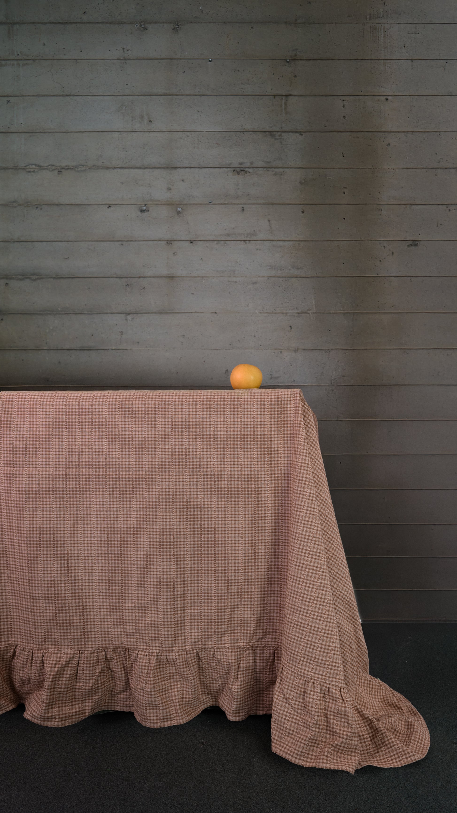 Mantel en tono beige con patrón de cuadros tejidos en telar y terminado con un delicado holán en todo el borde. Su diseño atemporal y artesanal aporta elegancia y movimiento a la mesa, ideal para reuniones familiares o cenas especiales. Confeccionado en lino y algodón por la artesana Ernestina en Chiapas, cada pieza refleja el equilibrio entre tradición textil y diseño contemporáneo. Hecho en México con envío a todo el país.