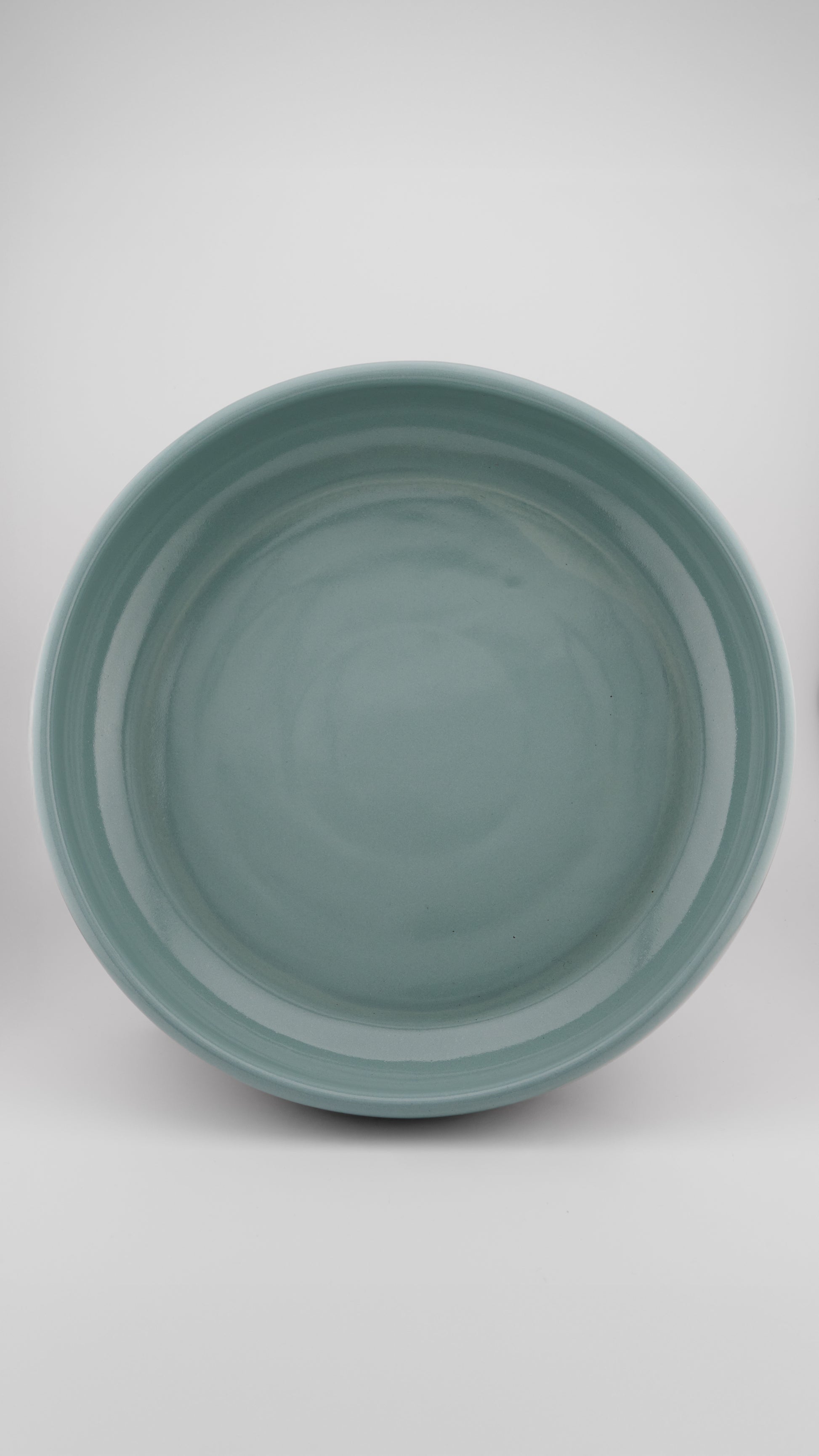 Platón de cerámica de alta temperatura con esmalte esmeralda brillante. Su forma generosa y bordes suaves lo hacen ideal para servir platos principales, ensaladas o compartir al centro. Cada pieza es torneada y esmaltada a mano, lo que le otorga un carácter único. Hecho en México con envío a todo el país.