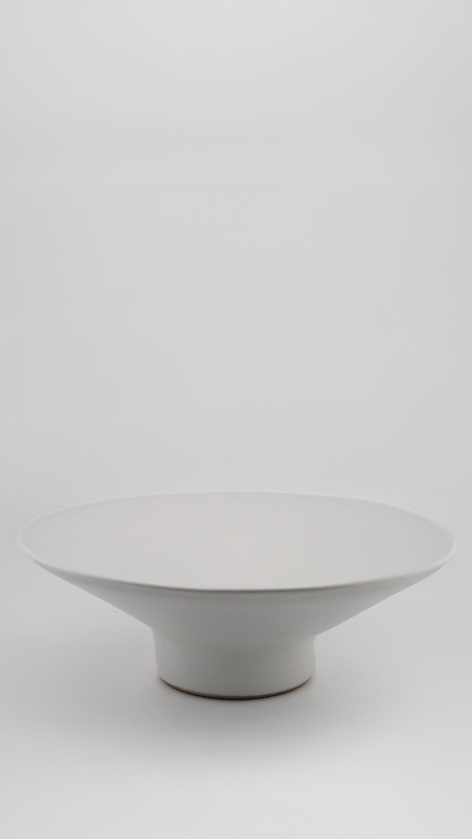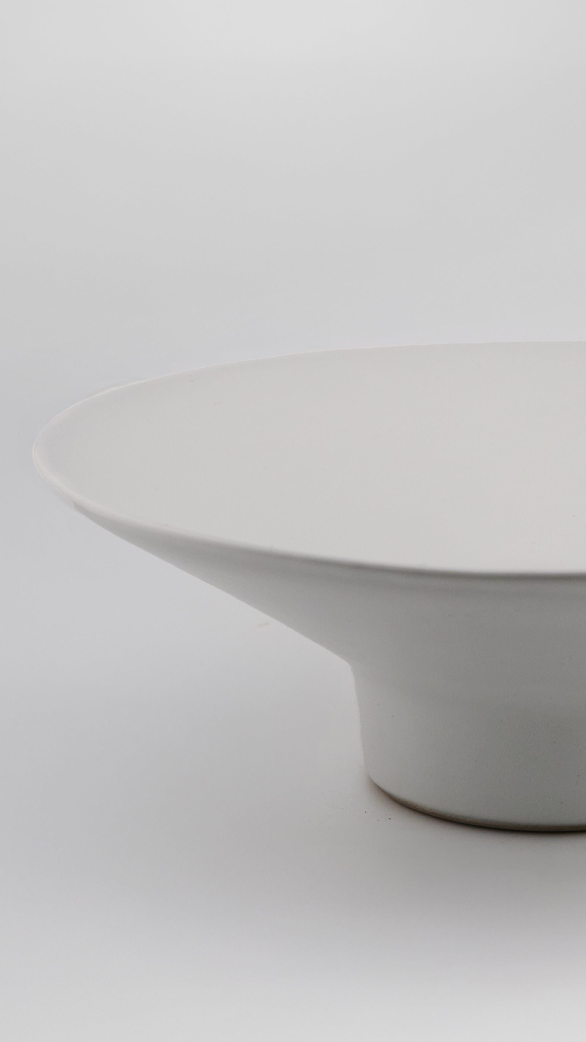 Bowl de cerámica de alta temperatura con diseño estilo japonés. Su forma escultórica tipo sombrero y acabado mate le dan una presencia contemporánea y elegante. Ideal para servir frutas, ensaladas o como pieza central decorativa. Cada pieza es torneada y esmaltada a mano, con un acabado minimalista que resalta la pureza del material. Hecho en México con envío a todo el país.