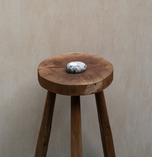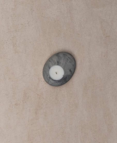 Vela piedra color marmoleado, pabilo de algodón aroma eucalipto menta y salvia.